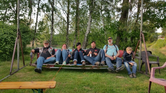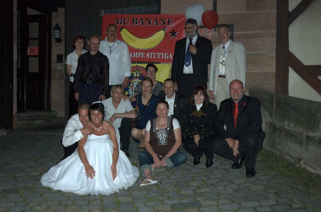 Mitglied Ingo (Bild unten: 1. von links) bei uns liebevoll „Adoptivbanane“ genannt wird. Seine Lebenspartnerin, Angela ist 2012 beim Sommertreffen des Verbandes der Motorradclubs Kuhle Wampe zur "Adoptivbananin" ernannt worden.