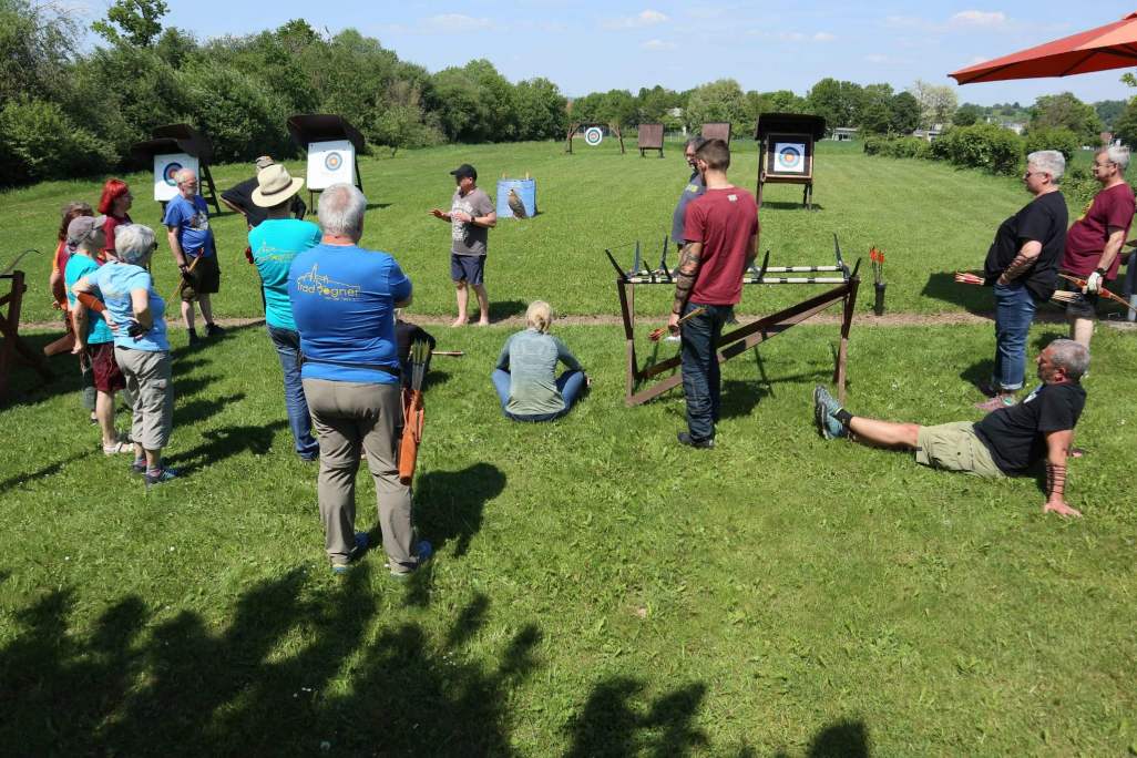 Nachdem alle mit Pfeilen, Bogen, Unterarmschutz und Schießhandschuh ausgestattet waren, gab es eine Sicherheits- und Verhaltenseinweisung.